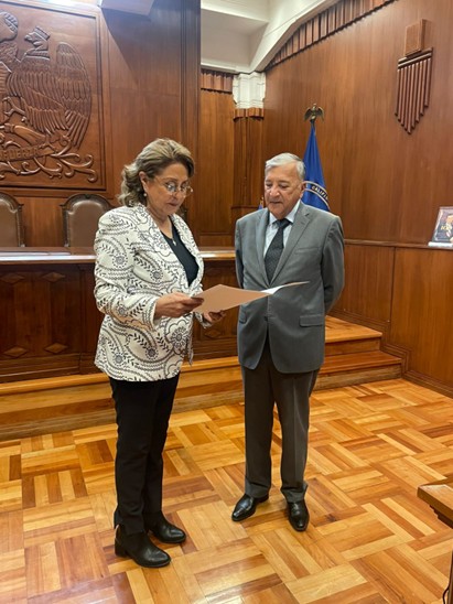 En la ocasión fue recibido por la Secretaria Relatora y Ministra de Fe del Tribunal, señora Carmen Gloria Valladares Moyano, quien en la sala de audiencias del edificio institucional, procedió a hacer entrega del acta.