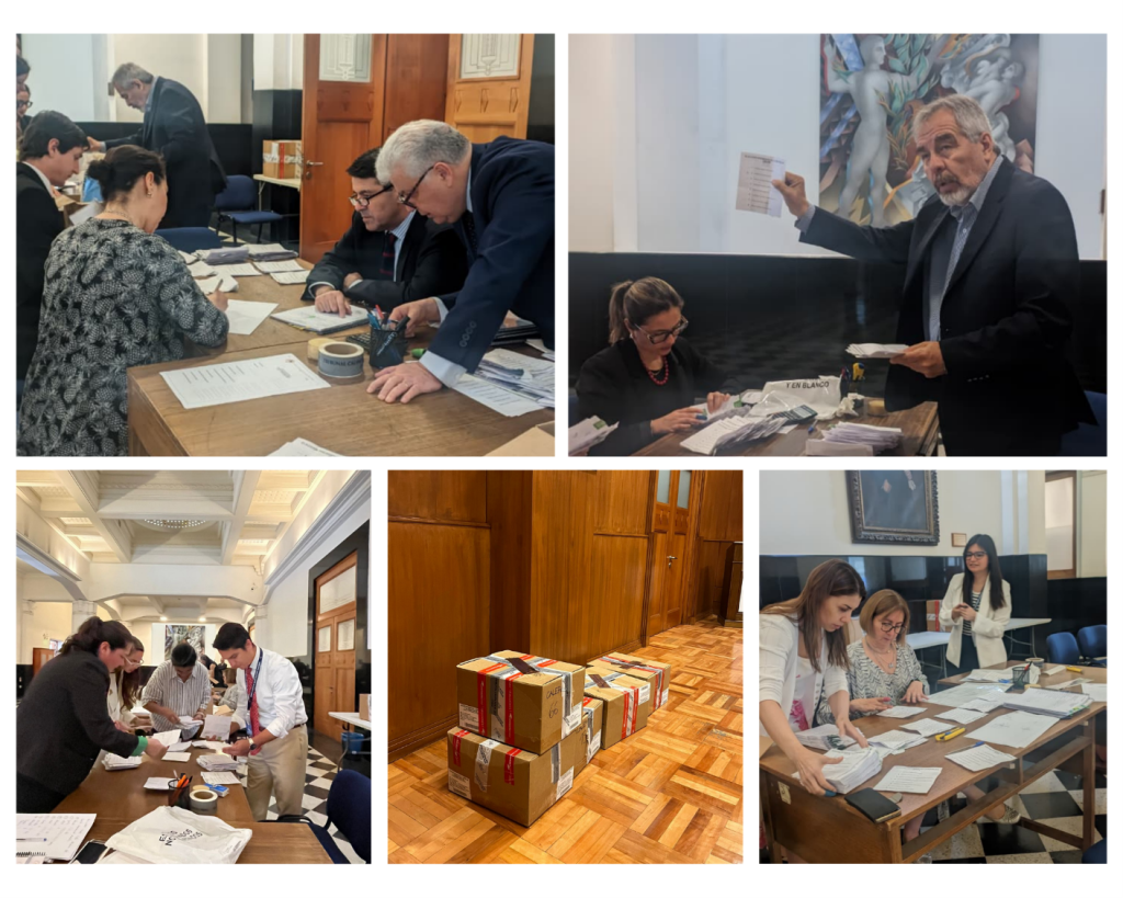 A partir de las 12:00 horas, el jueves 27 de noviembre de 2025, el Tribunal Calificador de Elecciones, procedió a efectuar el Escrutinio Público de 16 cajas con efectos electorales de las Mesas Receptoras de Sufragios de las regiones de Atacama, Coquimbo, Libertador Bernardo O’Higgins, Maule y Valparaíso, todas relativas a la Elección Presidencial en primera votación, celebrada el pasado domingo 16 de noviembre de 2025.